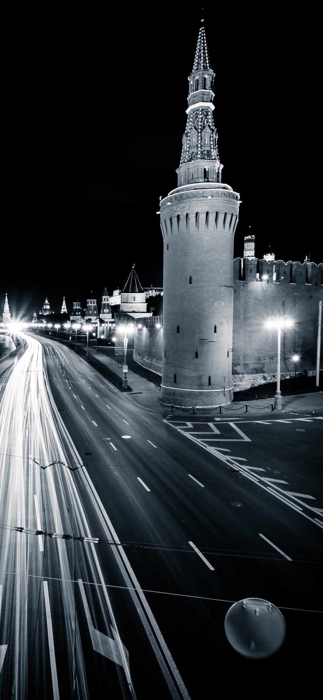 Обои: Москва, Кремль, черное и белое - 1080x2340