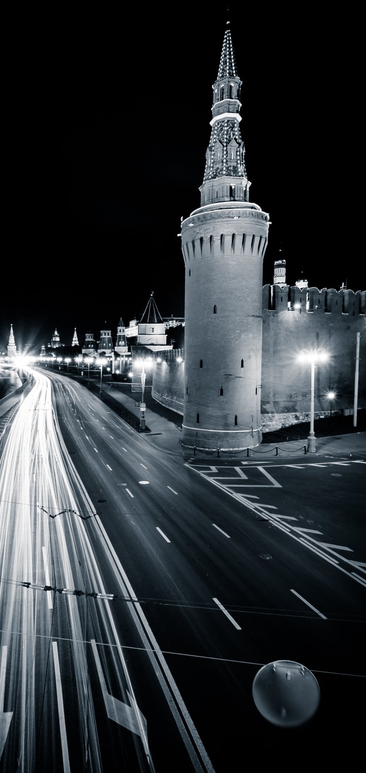 Обои: Москва, Кремль, черное и белое - 720x1520