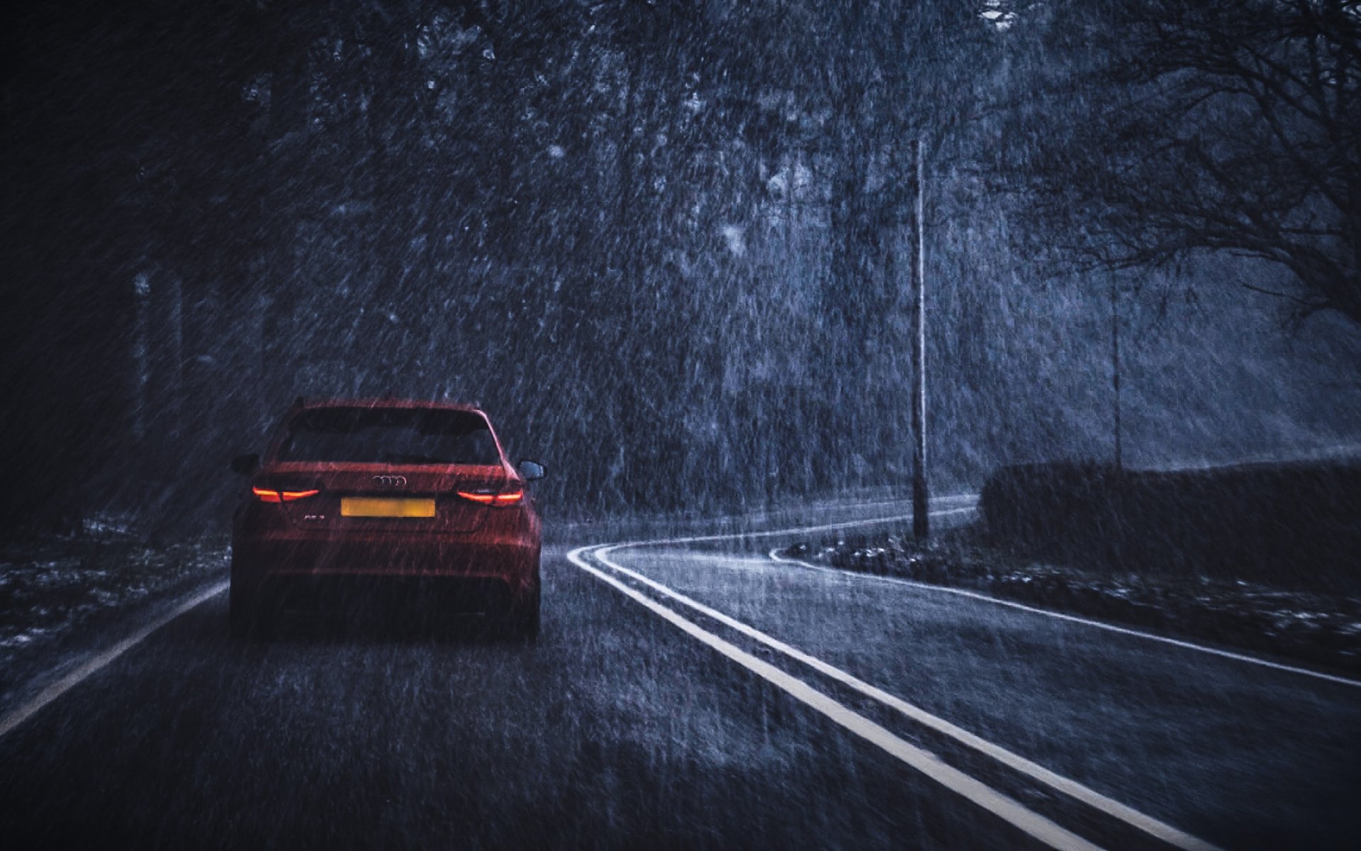 Обои: Audi, дождь, дорога - 1920x1200