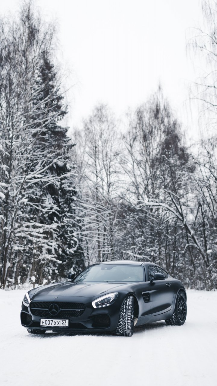 Обои: Mercedes-AMG, черное и белое, зима - 720x1280