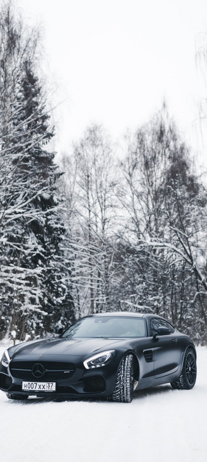 Обои: Mercedes-AMG, черное и белое, зима - 720x1600