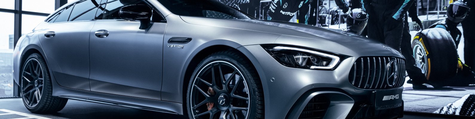 Обои: Mercedes-AMG, спортивная машина, серый - 1590x400