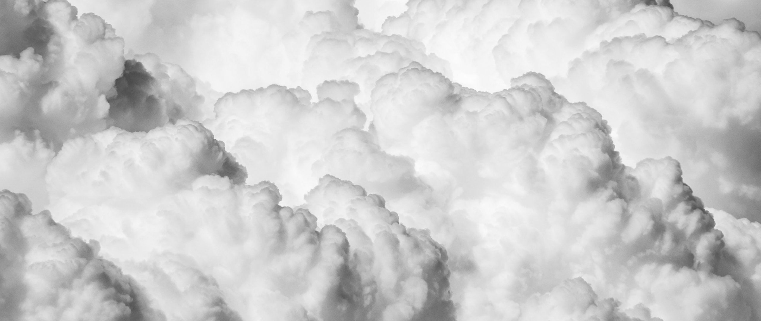 Обои: кучевые облака, черное и белое - 2560x1080