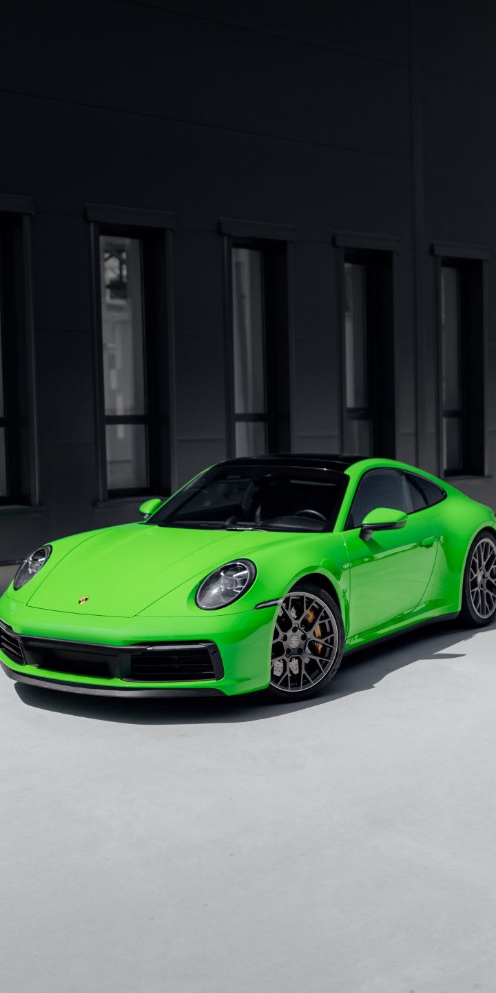 Обои: Porsche 911, спортивная машина, зеленый - 720x1440