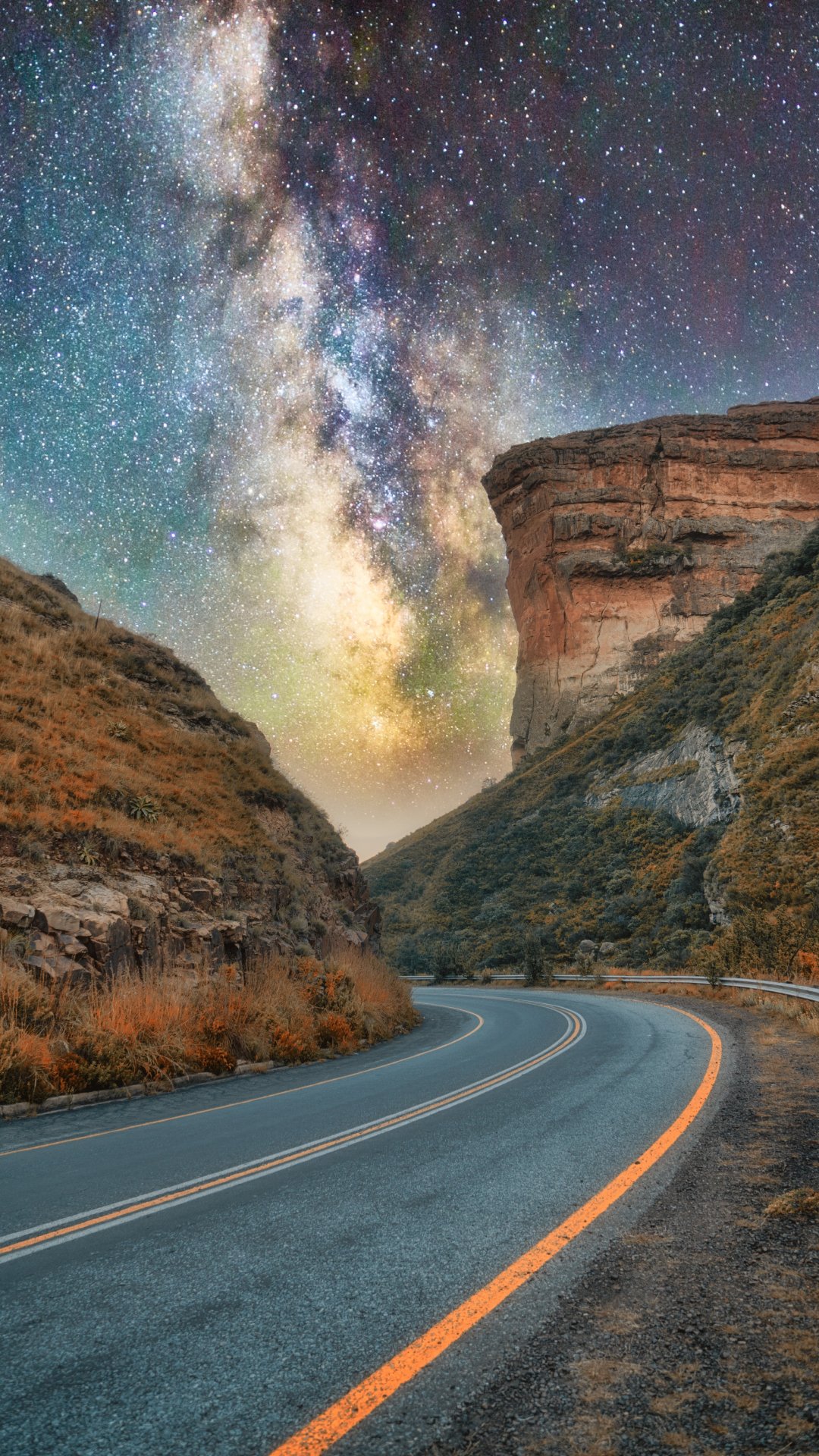 Обои: дорога, ночь, звездное небо - 1080x1920