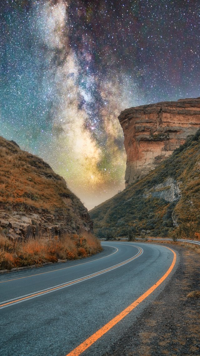 Обои: дорога, ночь, звездное небо - 640x1136