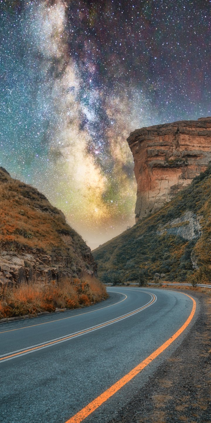 Обои: дорога, ночь, звездное небо - 720x1440