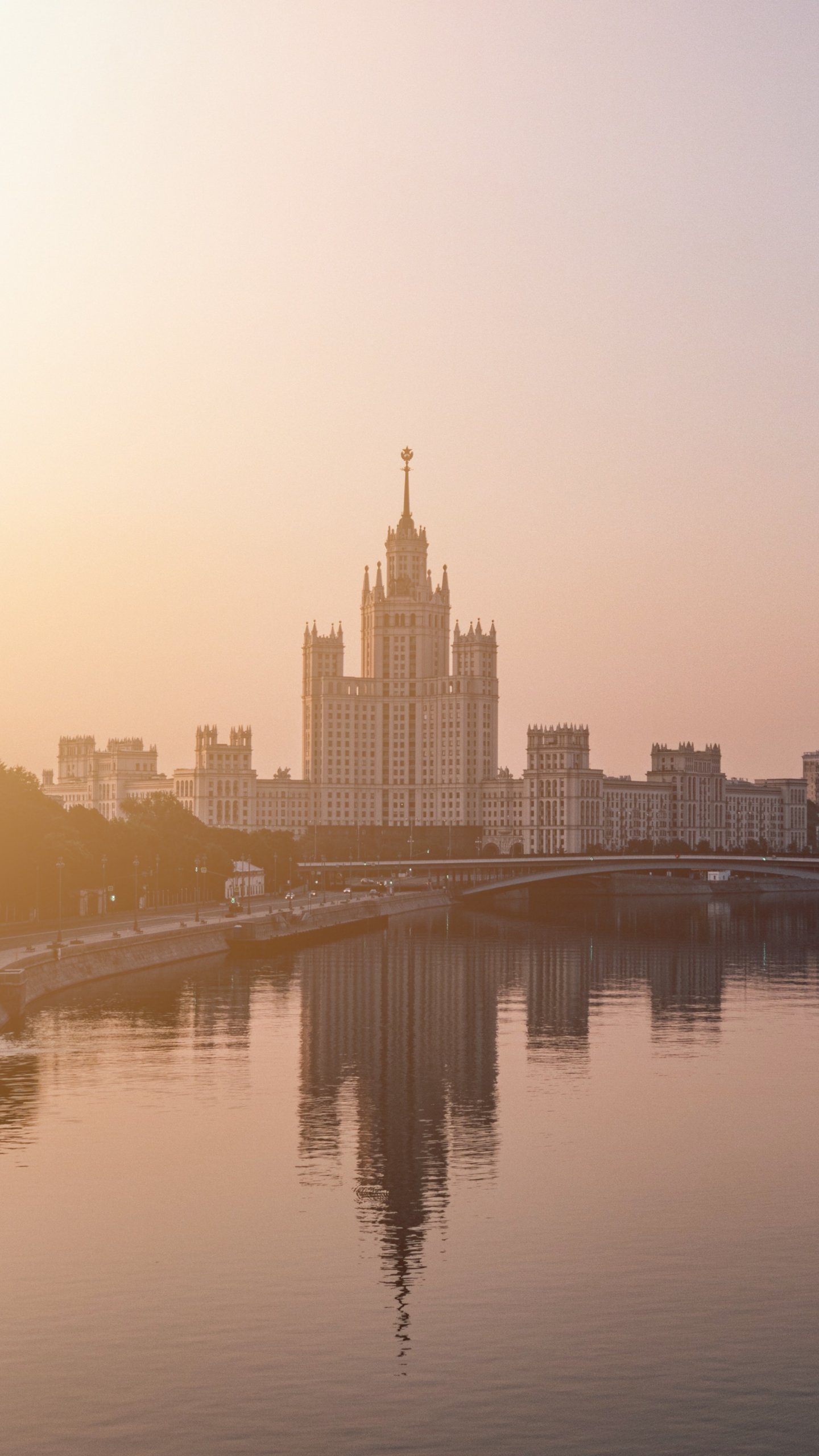 Обои: Раушская набережная, Сталинская высотка, Москва - 1440x2560