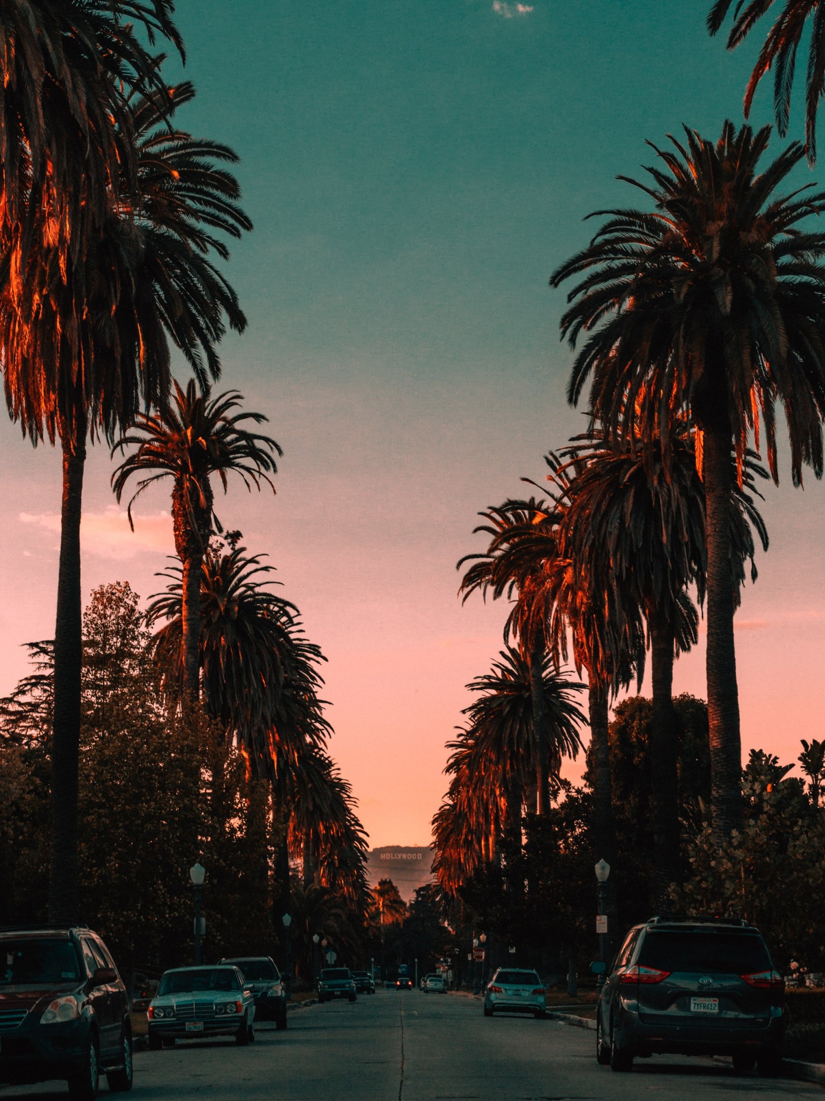 Обои: пальмы, дорога, закат - 1620x2160