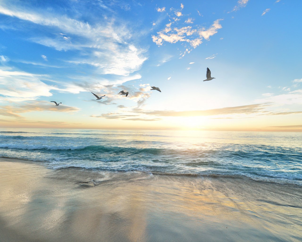 Обои: рассвет, море, пляж - 1280x1024