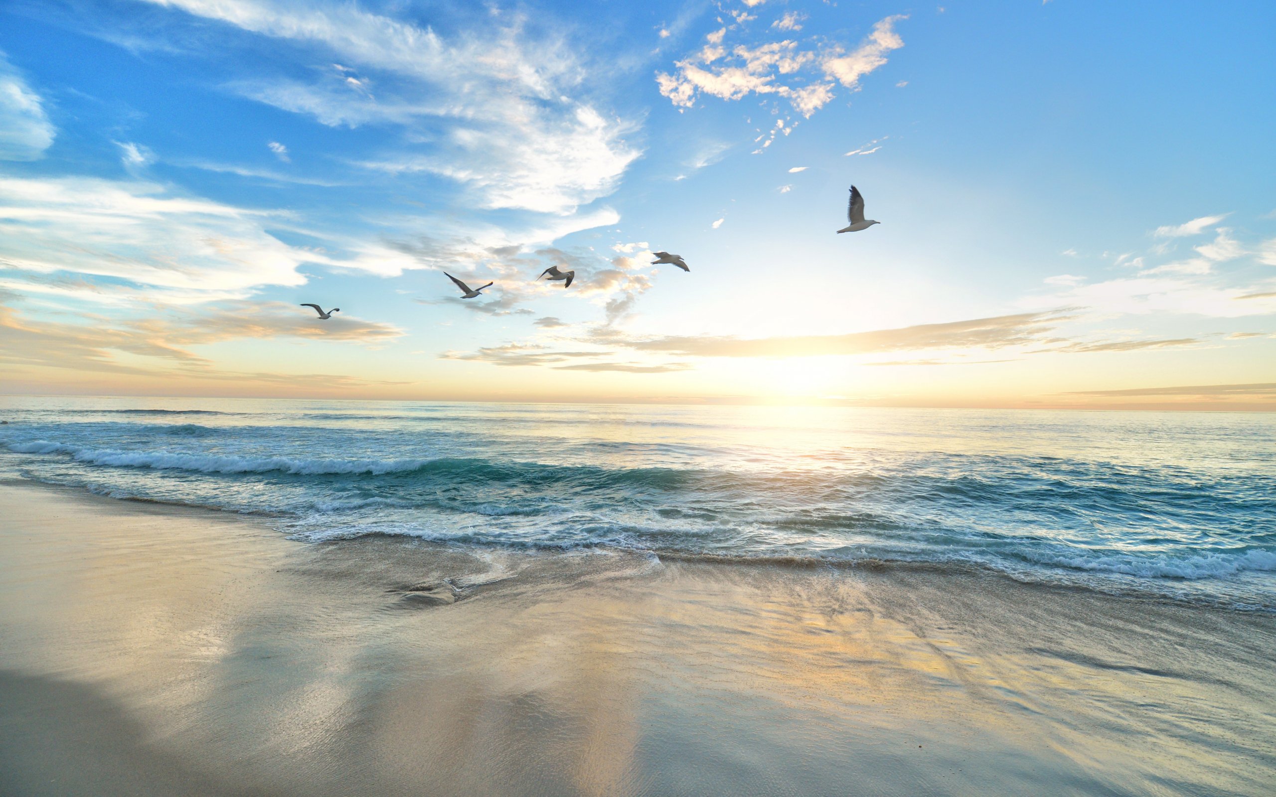 Обои: рассвет, море, пляж - 2560x1600