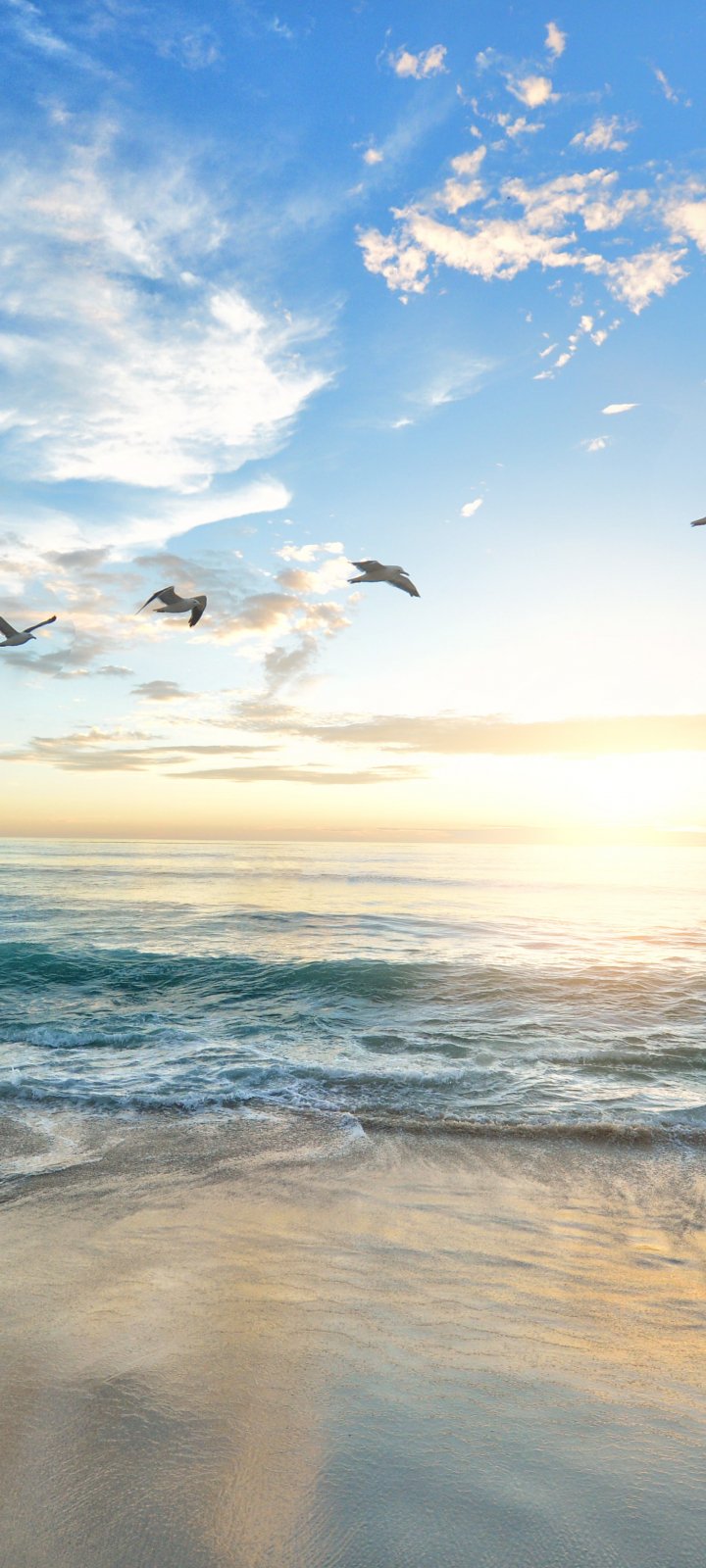 Обои: рассвет, море, пляж - 720x1600
