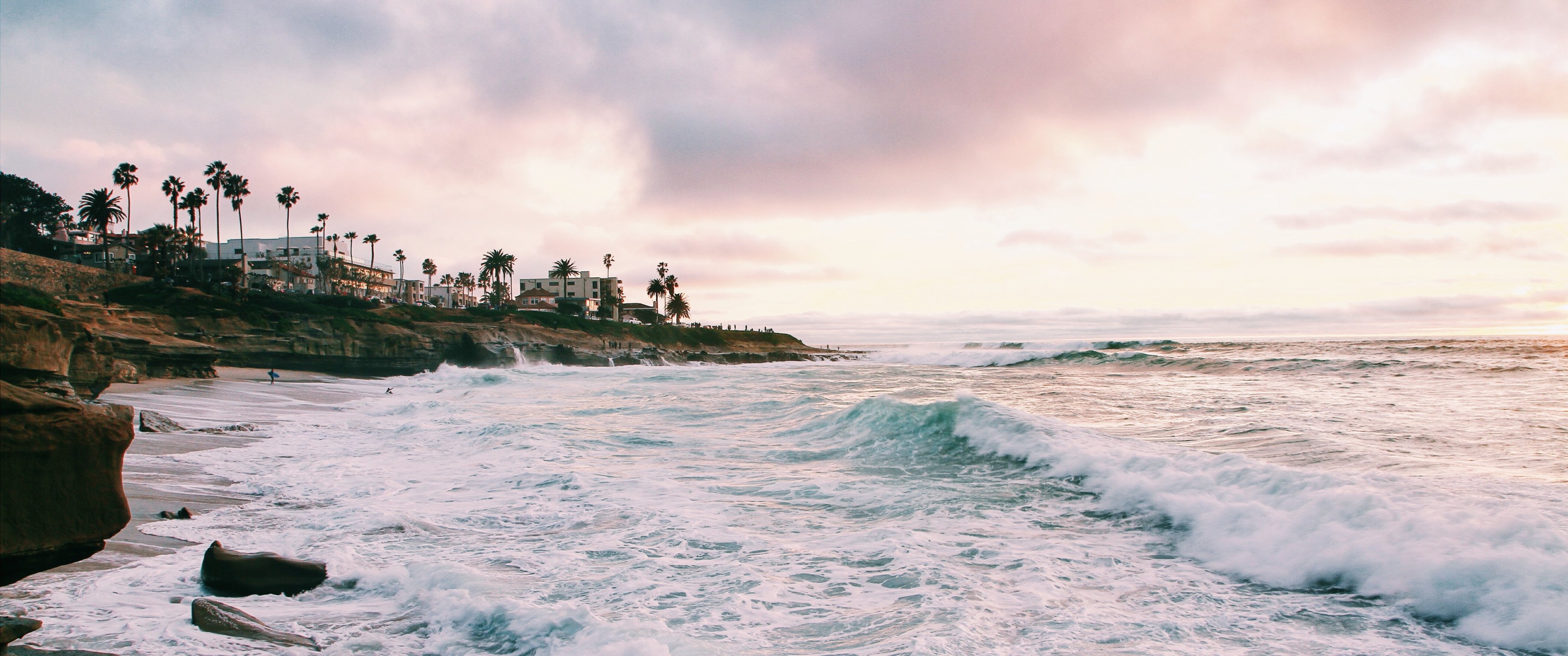 Обои: пляж, морская пена, море - 3440x1440