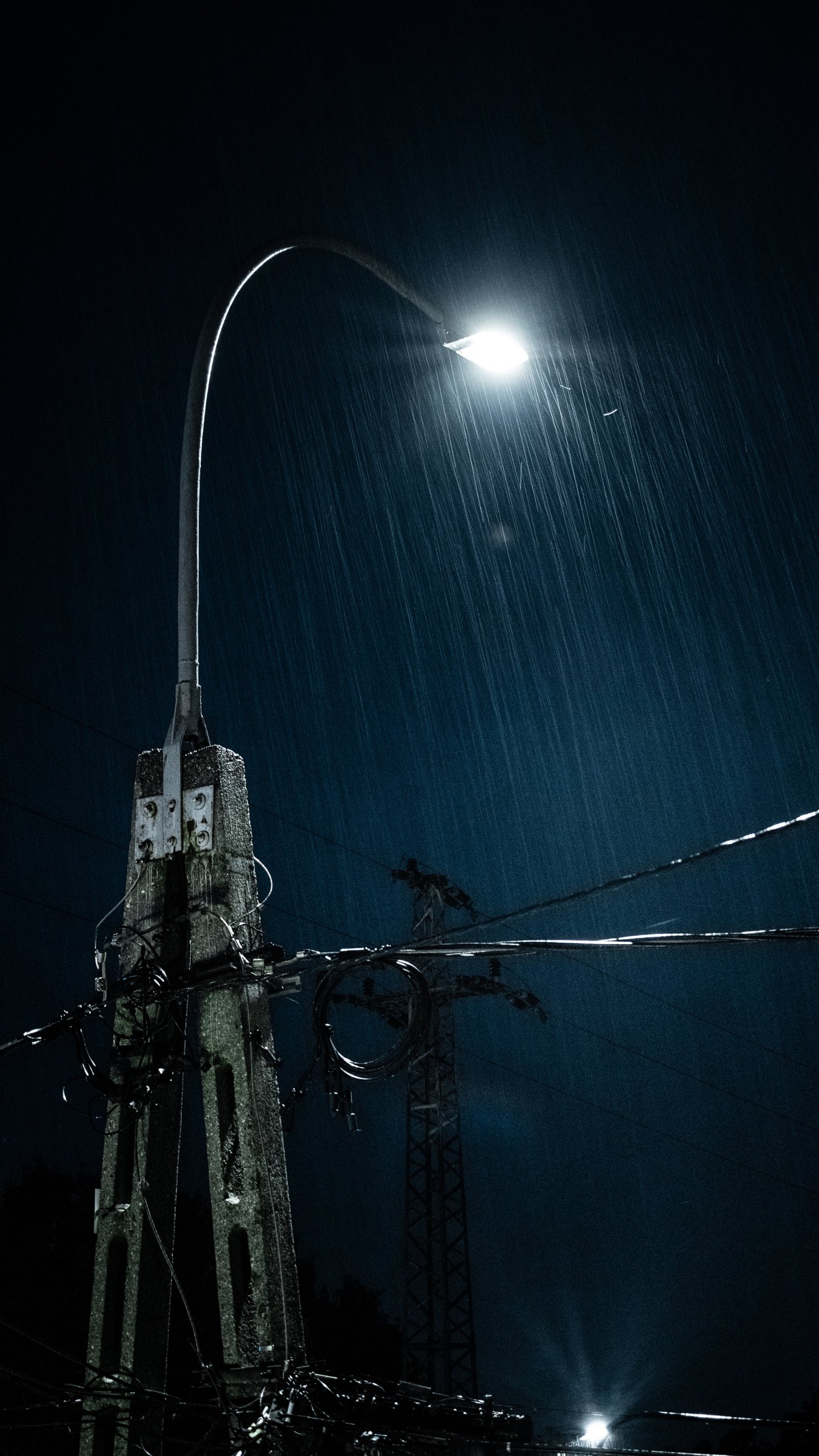 Обои: дождь, ночь, фонарь - 1440x2560