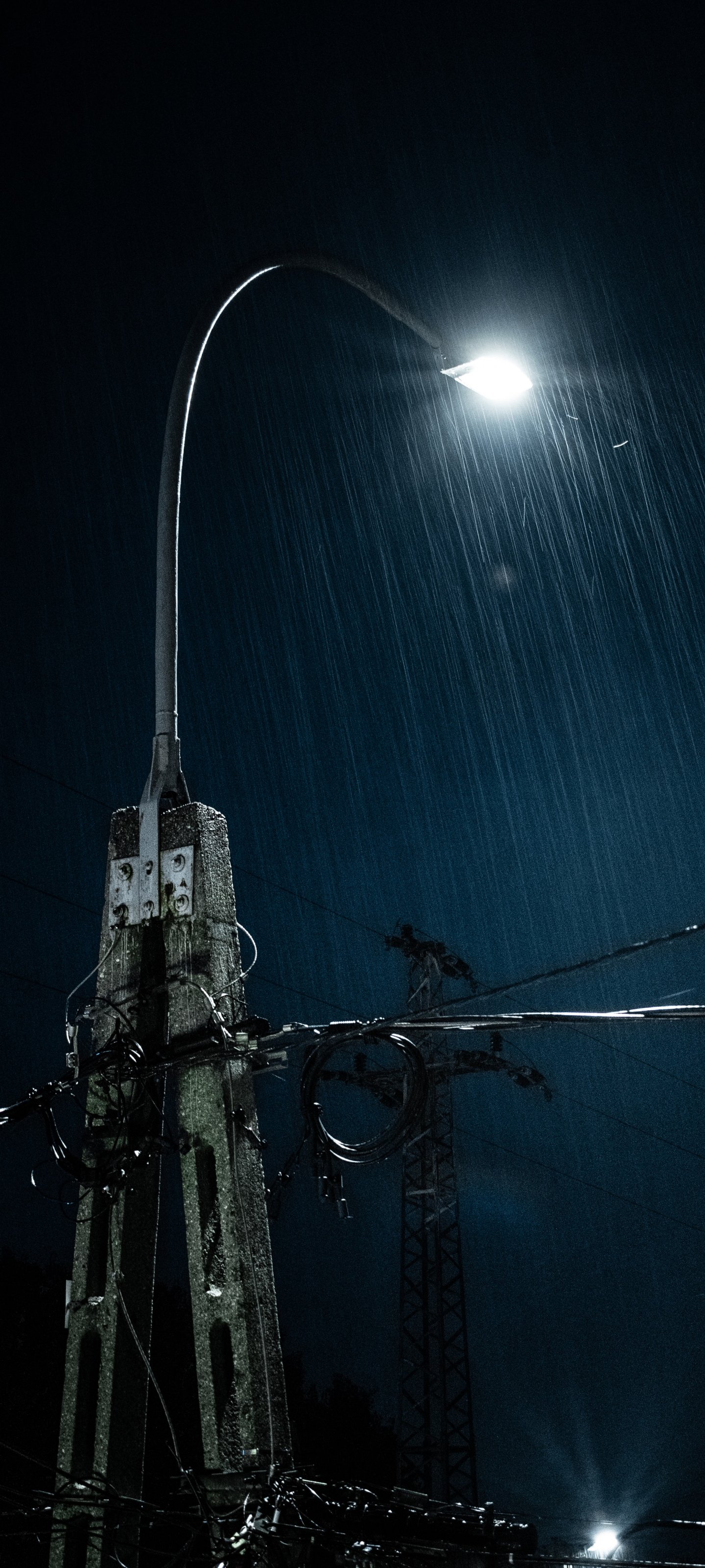 Обои: дождь, ночь, фонарь - 1440x3200