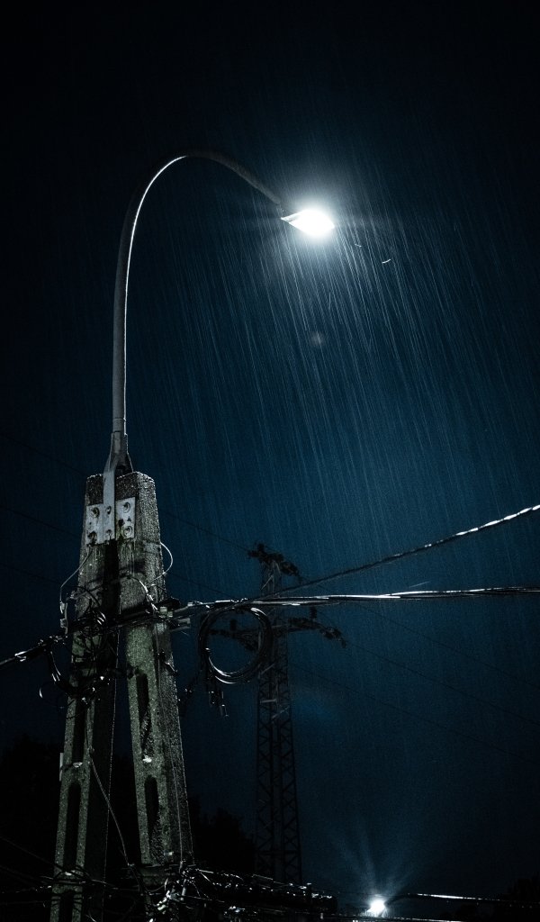 Обои: дождь, ночь, фонарь - 600x1024