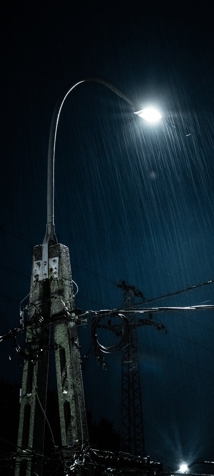 Обои: дождь, ночь, фонарь - 720x1600