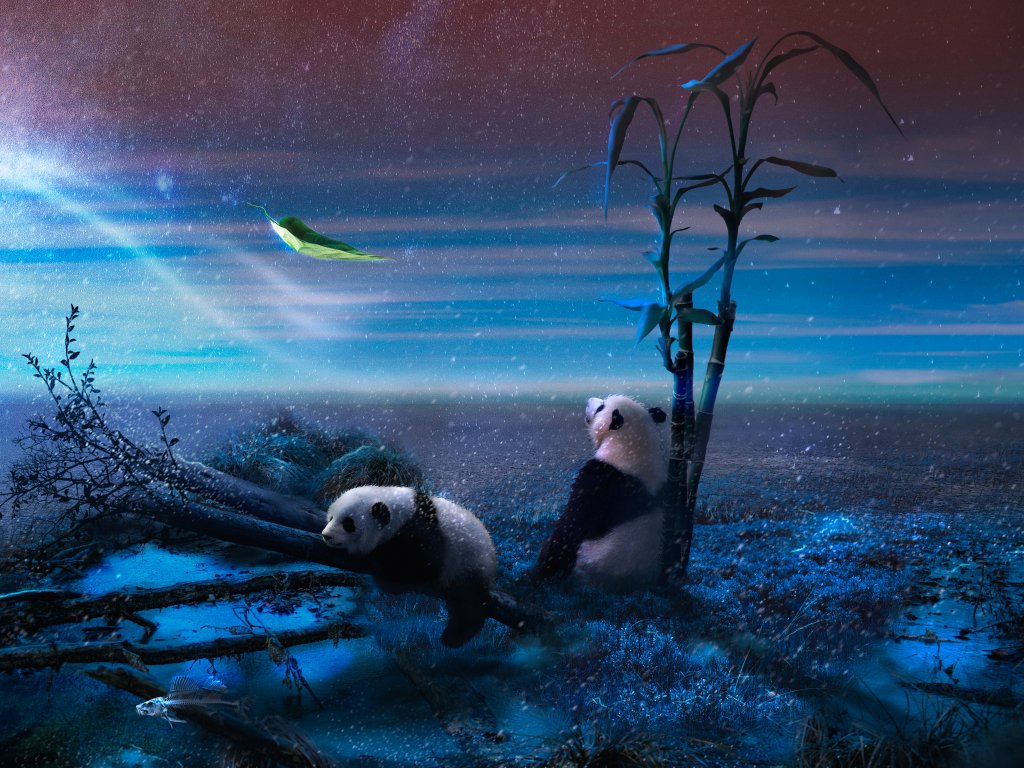 Обои: панда, синий, снег - 1024x768