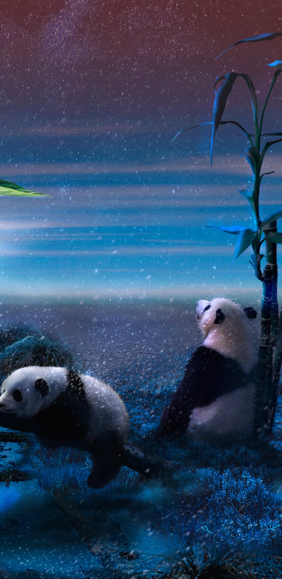 Обои: панда, синий, снег - 1080x2220
