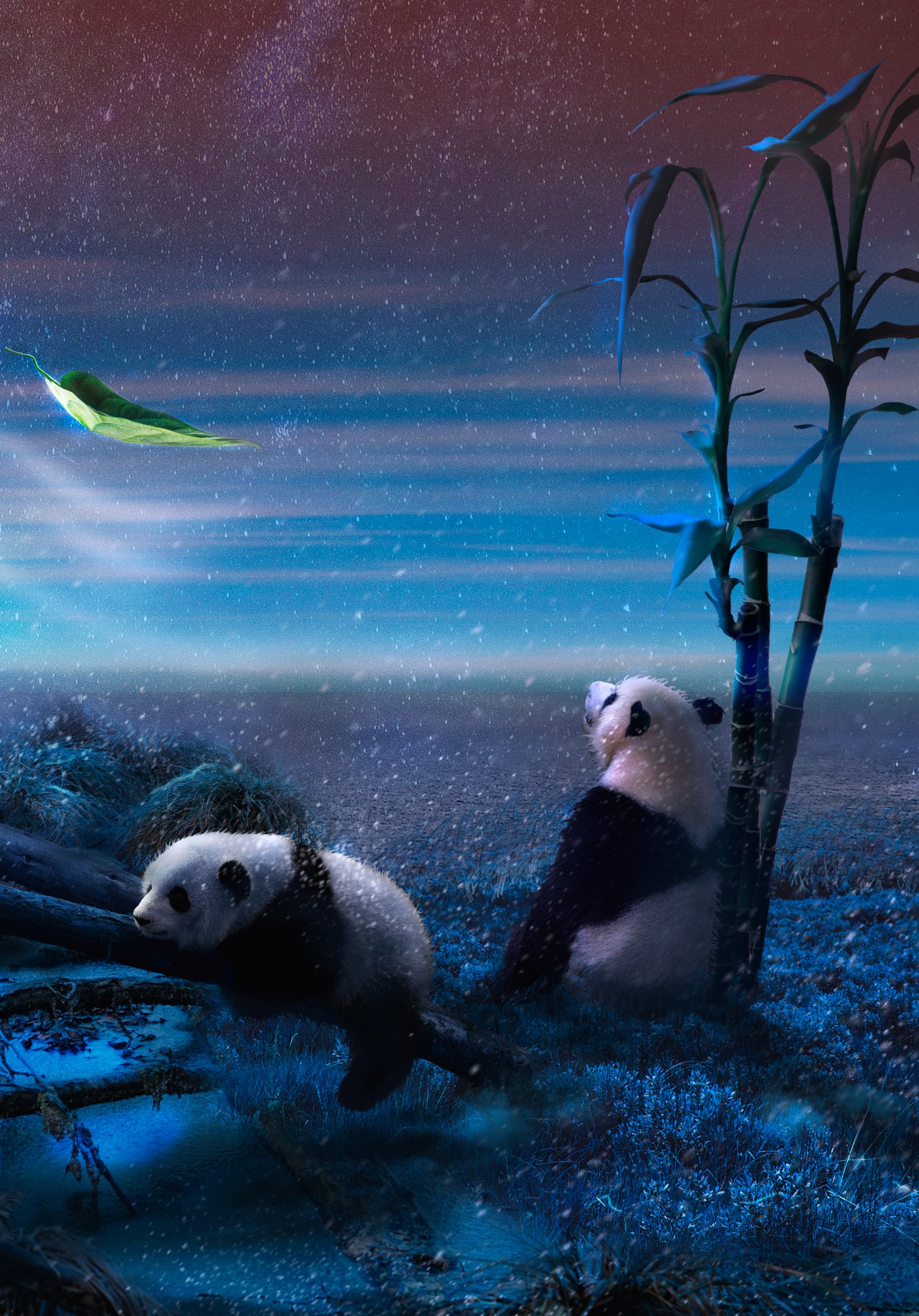 Обои: панда, синий, снег - 1668x2388
