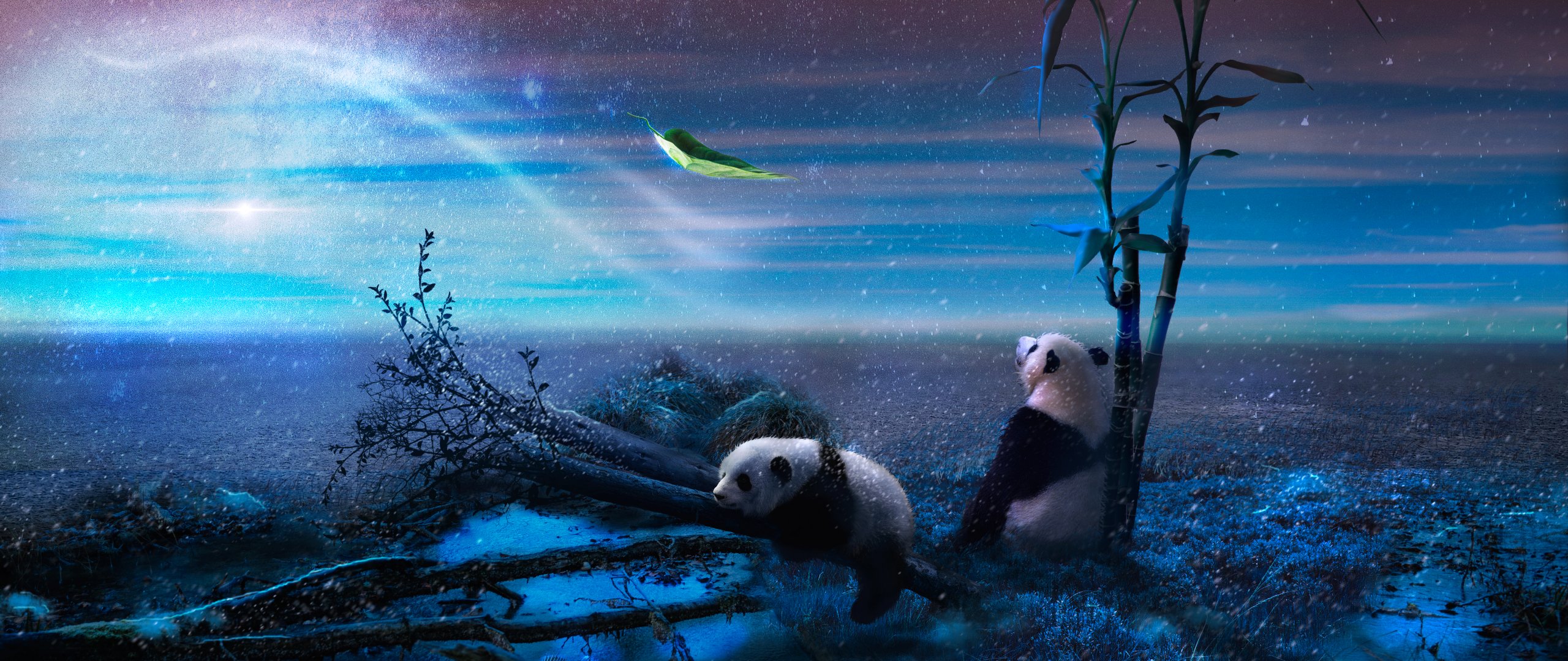 Обои: панда, синий, снег - 2560x1080