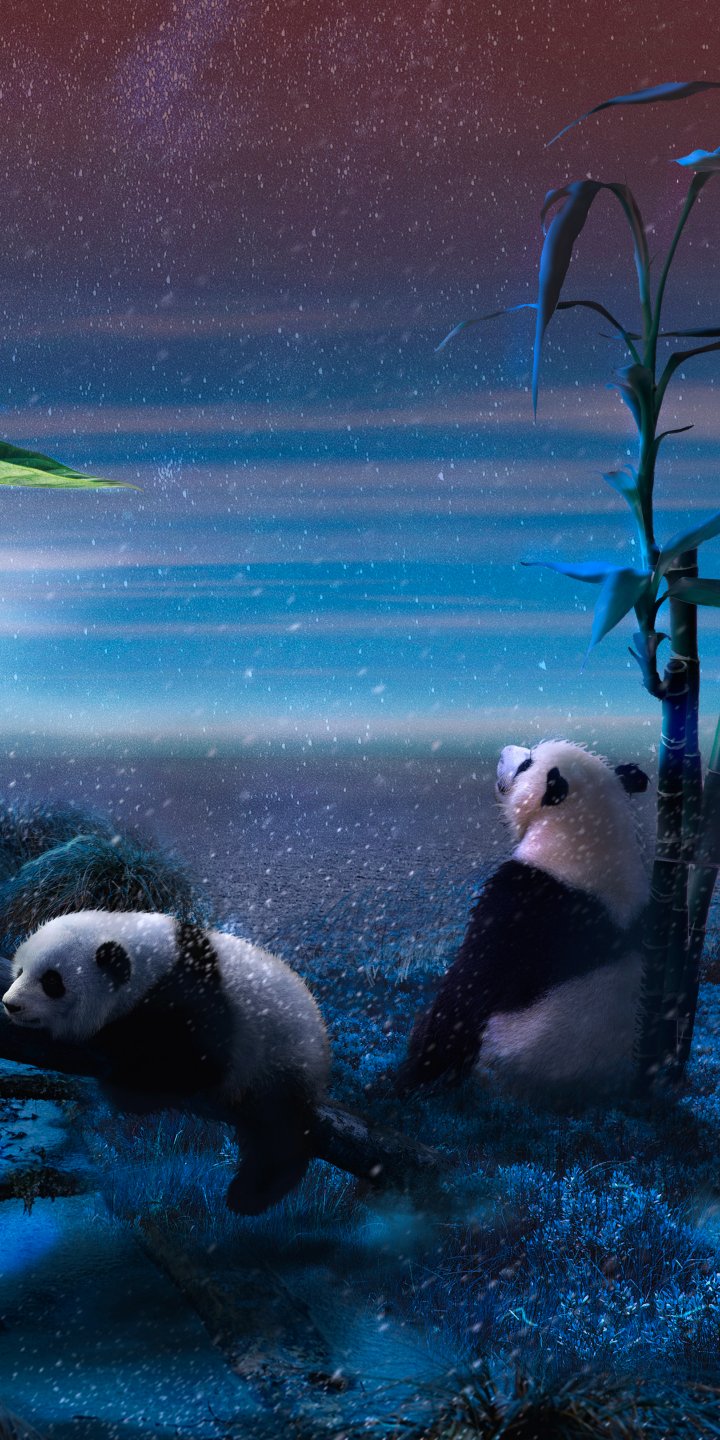 Обои: панда, синий, снег - 720x1440