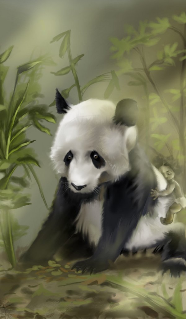 Обои: панда, медведь, зеленый - 600x1024