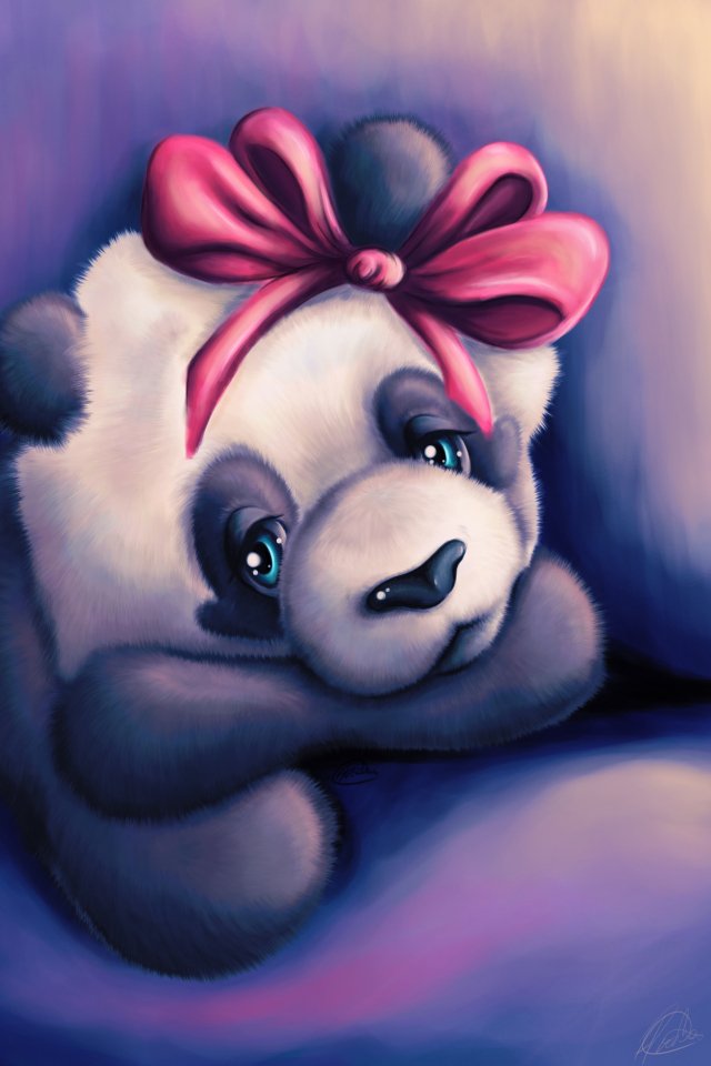Обои: панда, фиолетовый - 640x960