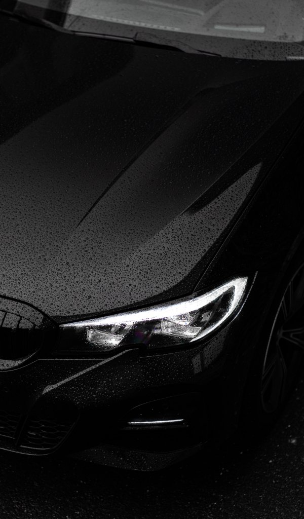 Обои: черный BMW, передняя фара, капот - 600x1024