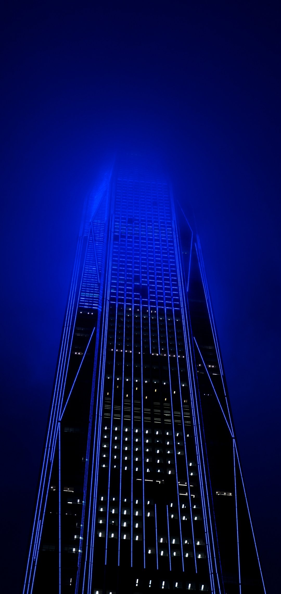 Обои: небоскреб, ночь, неон - 1080x2280
