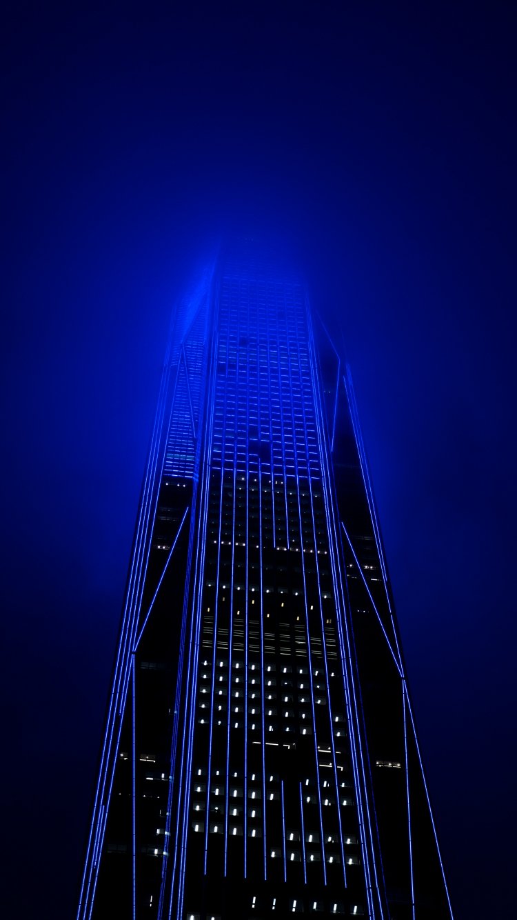 Обои: небоскреб, ночь, неон - 750x1334