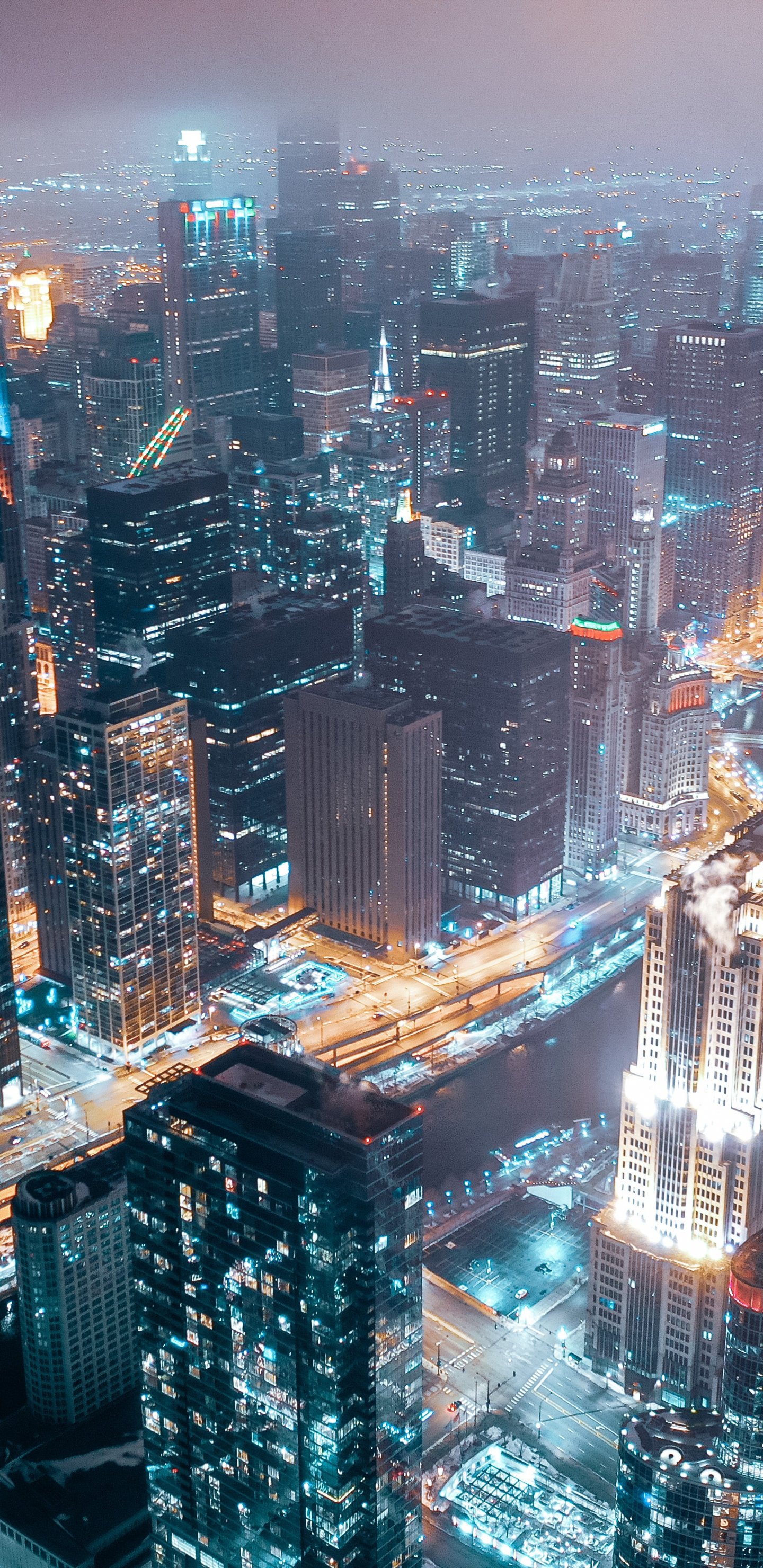 Обои: Чикаго, город, вид с высоты птичьего полета - 1440x2960
