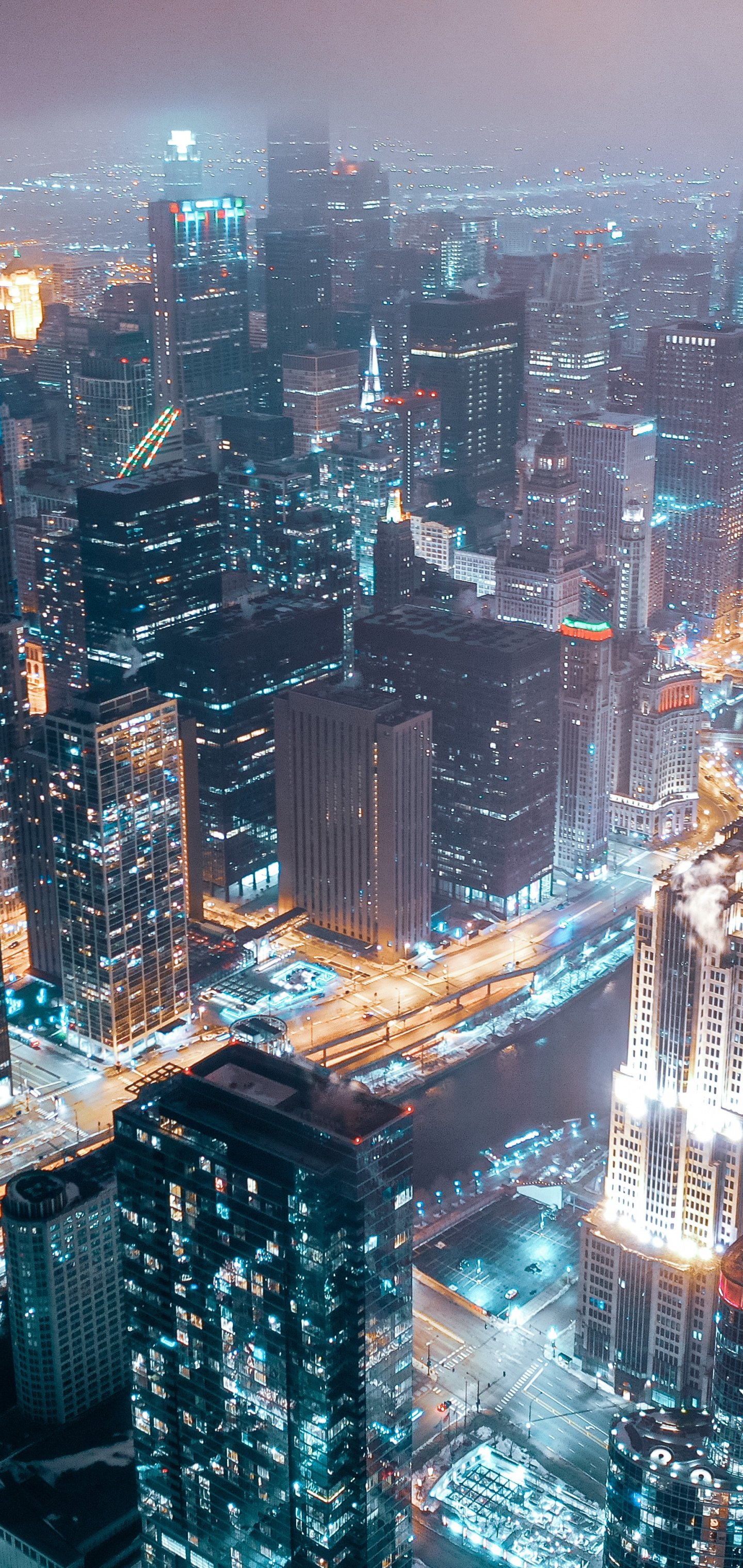 Обои: Чикаго, город, вид с высоты птичьего полета - 1440x3040