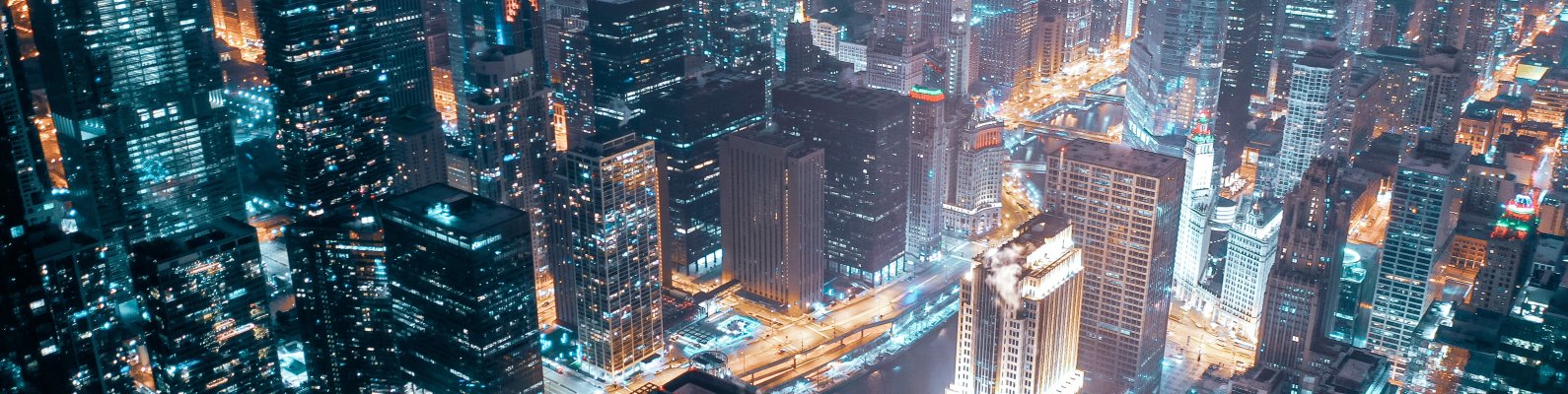 Обои: Чикаго, город, вид с высоты птичьего полета - 1590x400