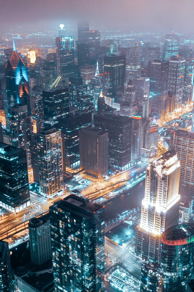 Обои: Чикаго, город, вид с высоты птичьего полета - 640x960