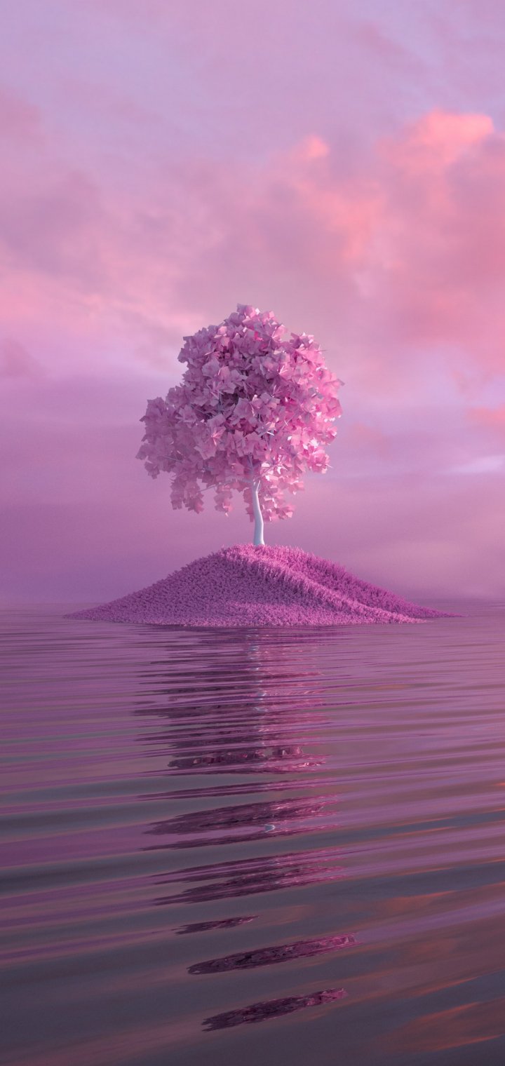 Обои: дерево, розовый - 720x1520