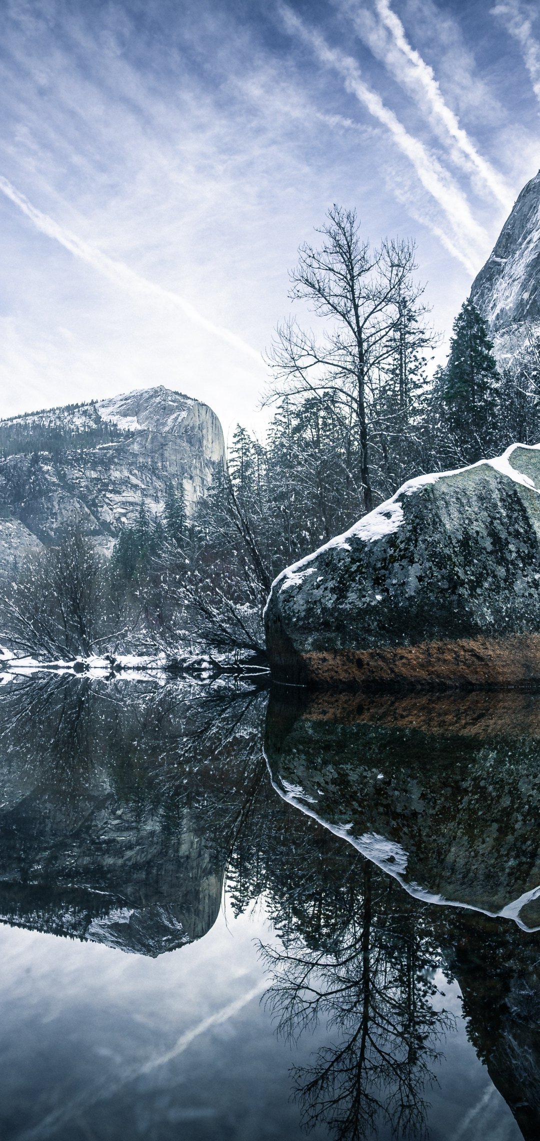 Обои: зима, отражение, серый - 1080x2280