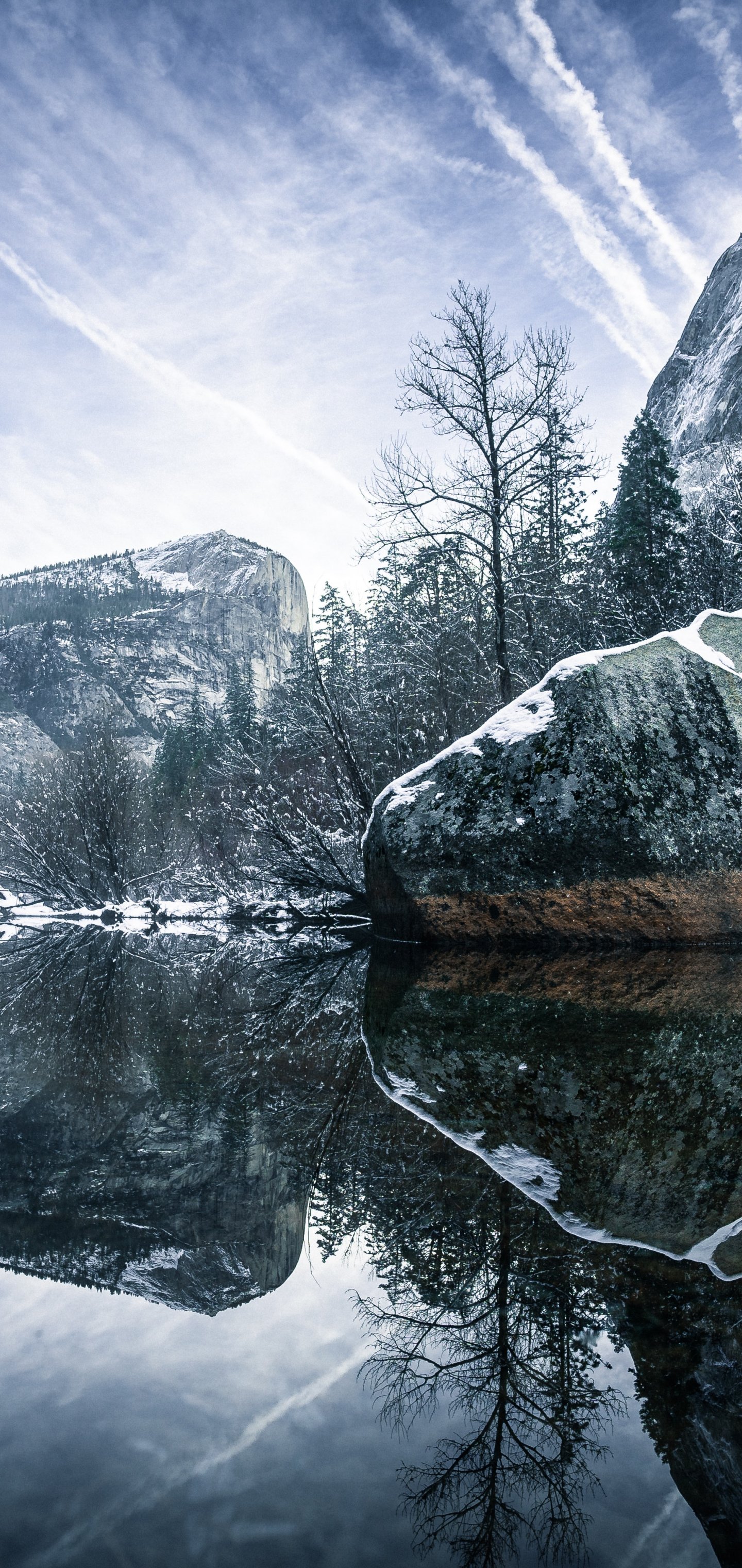 Обои: зима, отражение, серый - 1440x3040