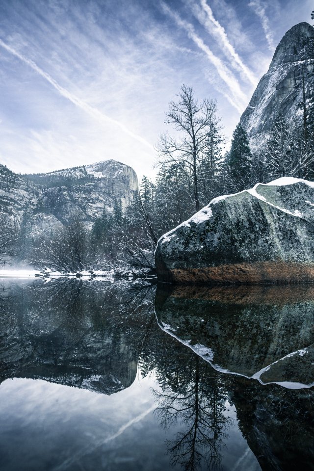 Обои: зима, отражение, серый - 640x960