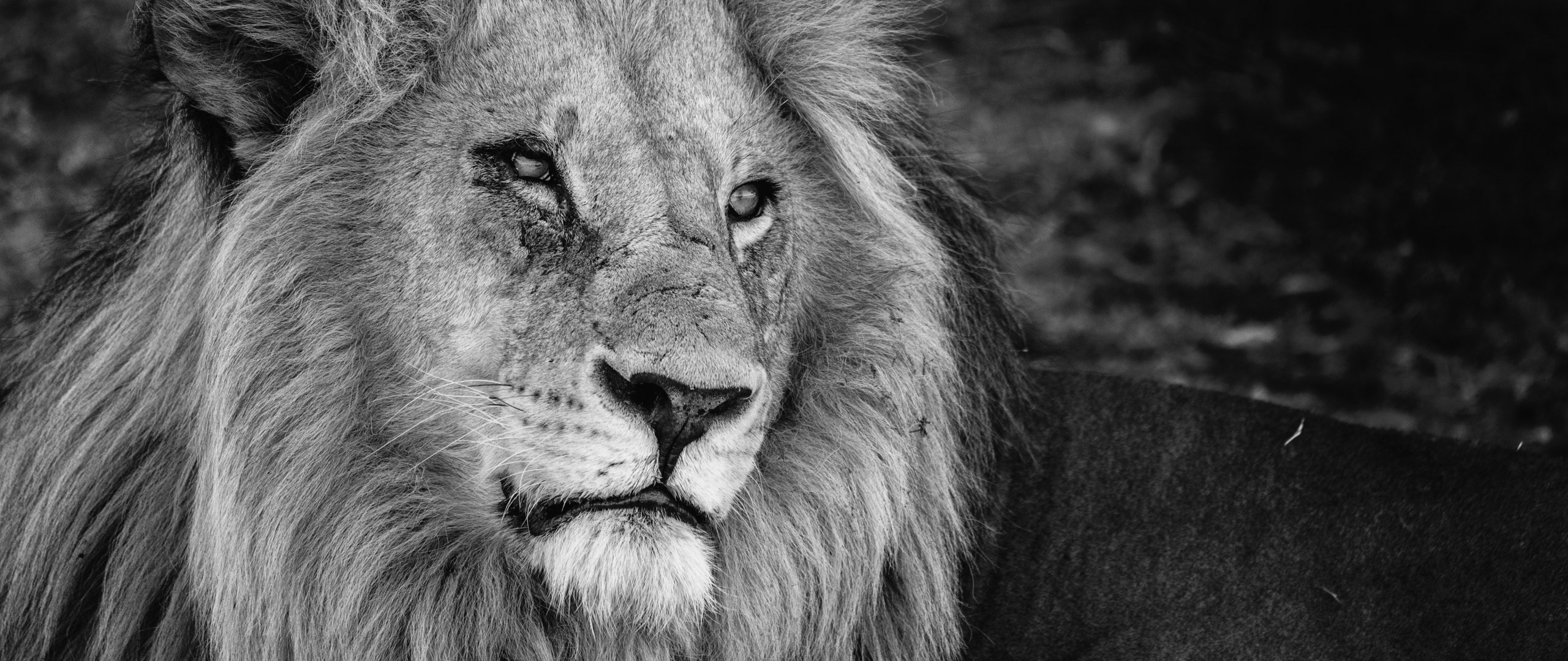 Обои: лев, грива, морда - 2560x1080