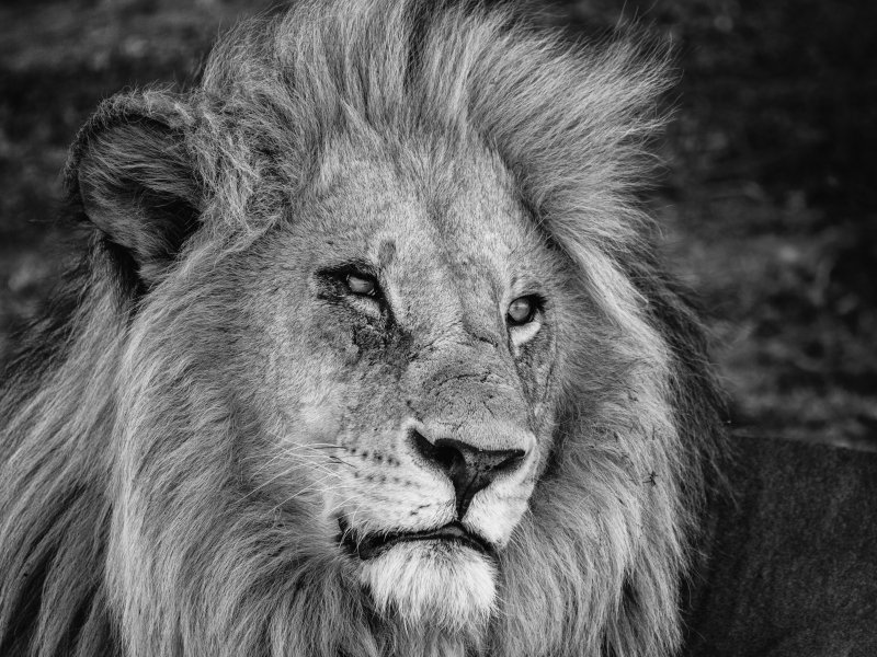 лев, хищник, черное и белое