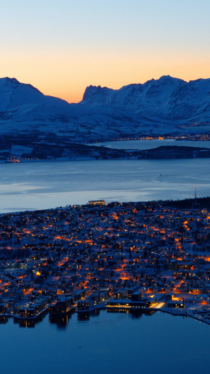 Обои: вид с высоты птичьего полета, город, ночь - 720x1280