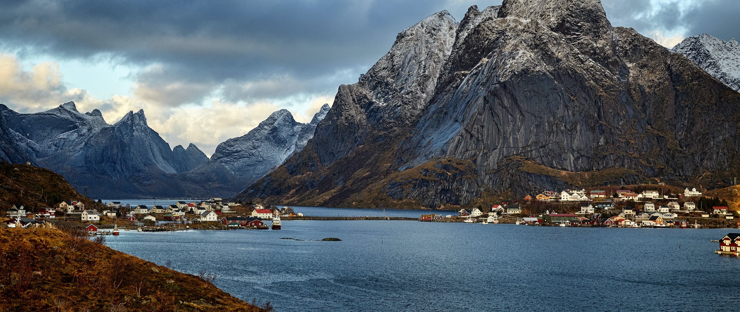 Обои: Норвегия, гора, озеро - 2560x1080