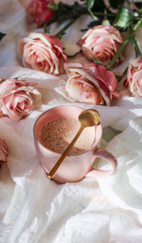 Обои: чашка кофе, эстетика розового - 600x1024