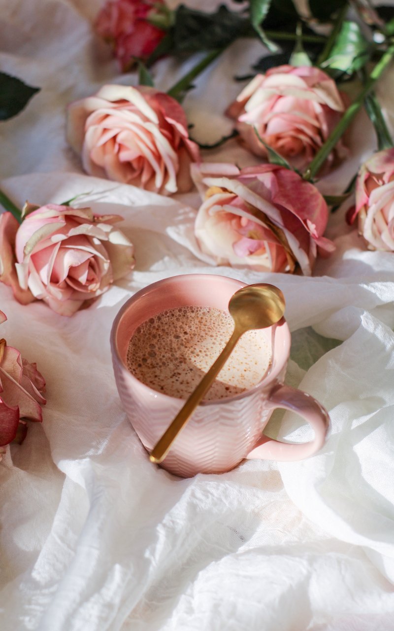 Обои: чашка кофе, эстетика розового - 800x1280