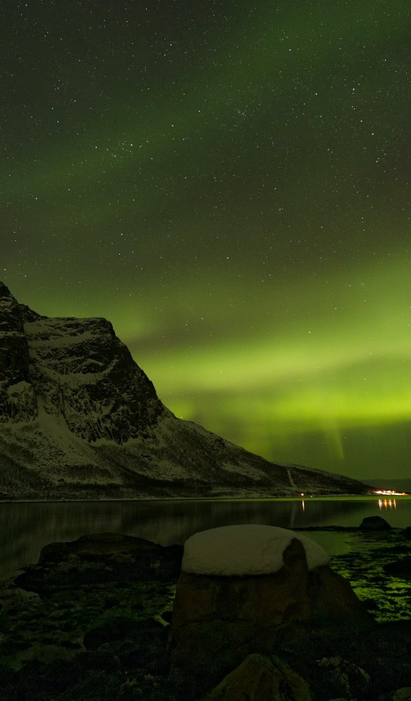 Обои: северное сияние, ночь, зеленый - 600x1024