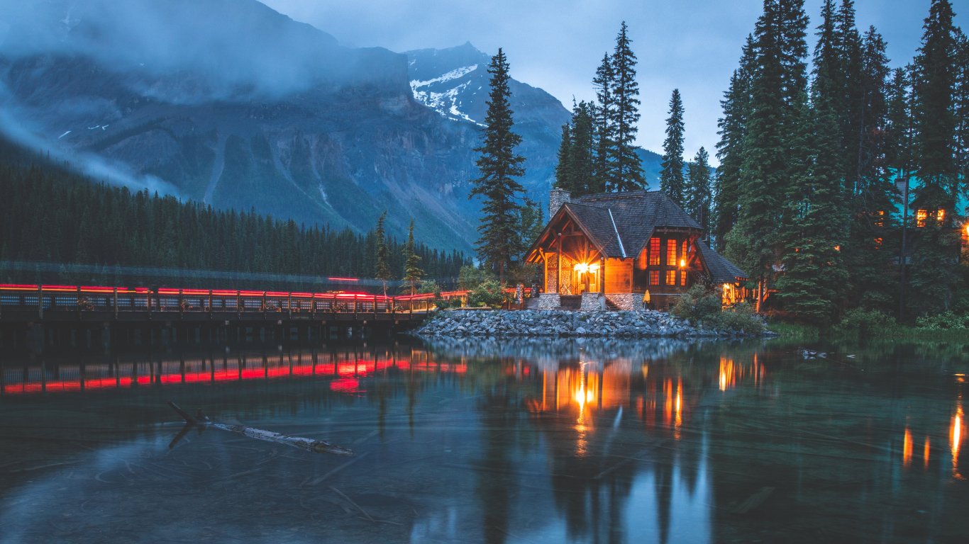 Обои: дом у озера, озеро, ночь - 1366x768