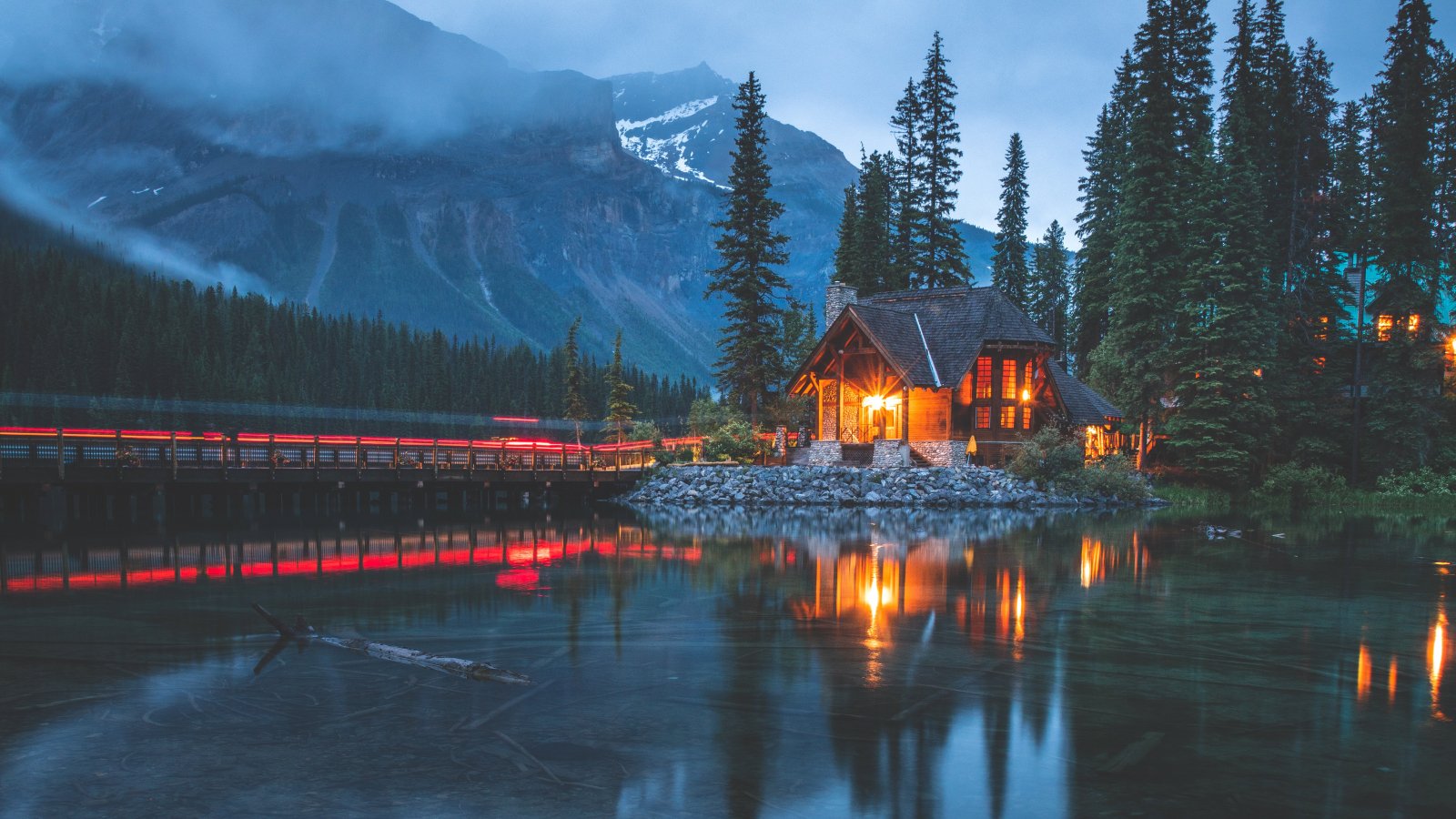 Обои: дом у озера, озеро, ночь - 1600x900
