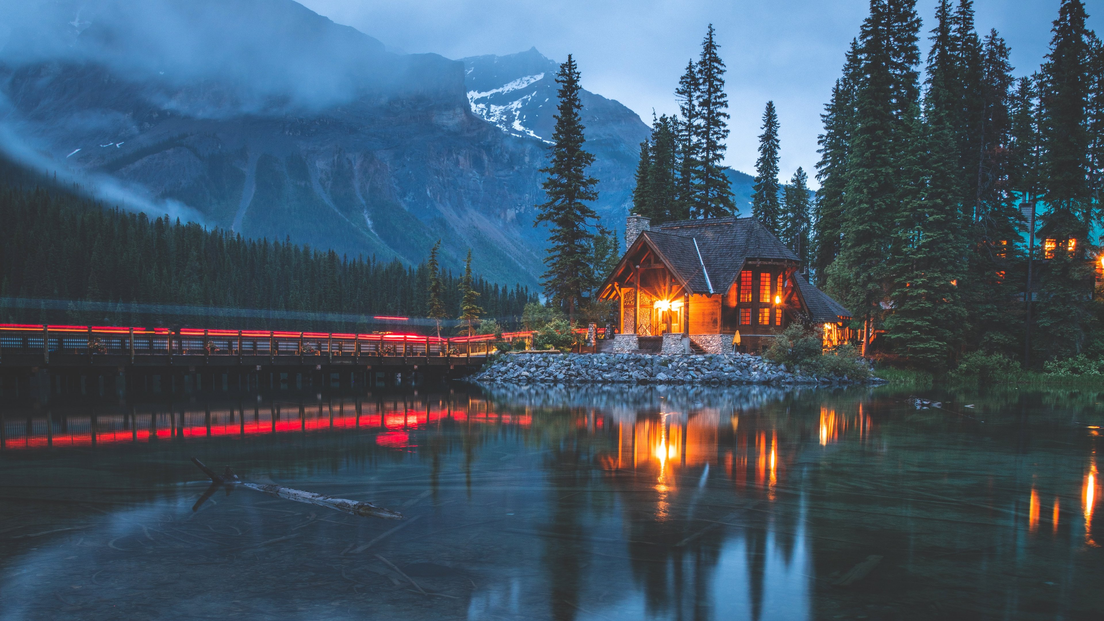 Обои: дом у озера, озеро, ночь - 3840x2160