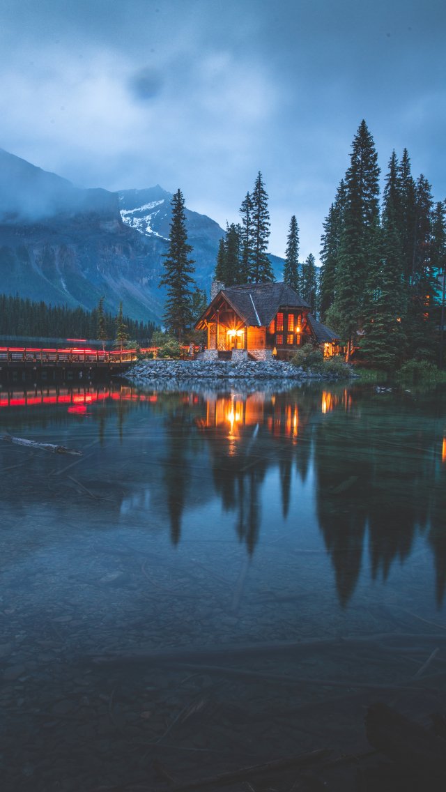 Обои: дом у озера, озеро, ночь - 640x1136